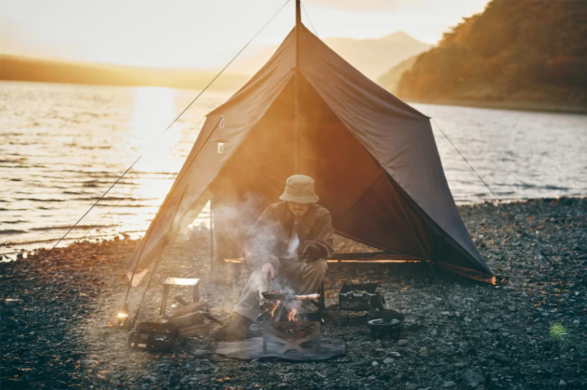 そんな姿もサマになる、TOKYO CRAFTS の焚き火シートです。